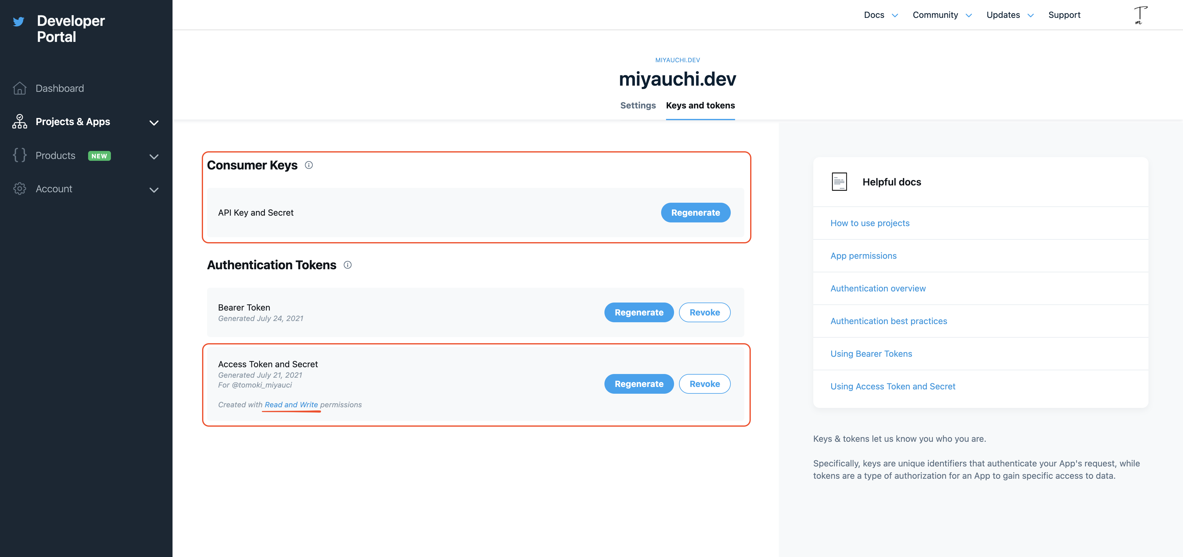 First, create a project and generate an API key from the Twitter Developer Portal.